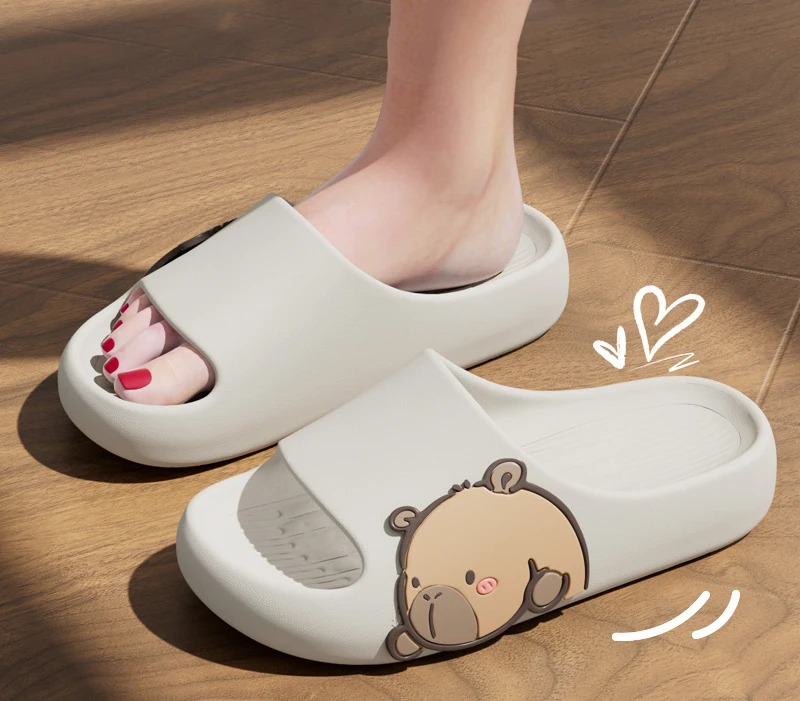 Slippers are made of EVA, the appearance of slippers is soft, the feet feel soft and comfortable, can quickly discharge water, go out will not wet feet, in addition, slippers are slip-resistant, resistant. Heat resistant features, not only can prevent foot slip but also can make the user's foot skin more soft, comfortable to wear, play a role in protecting the sole of the foot.