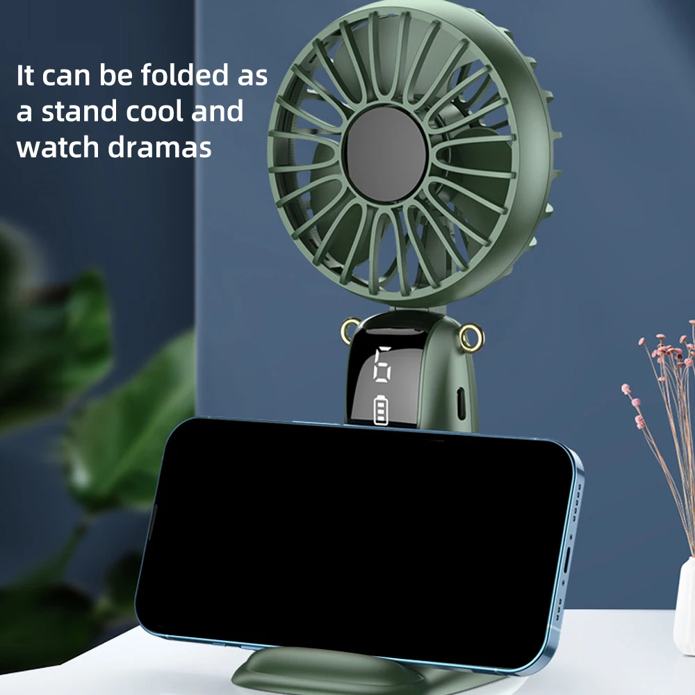 2PCS Mini Handheld Fan 6 Speed USB Rechargeable Portable Foldable Desk Neck Hanging Fan with Phone Stand