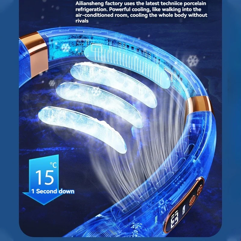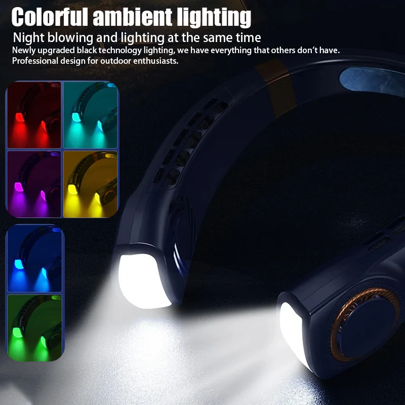 Portable Hanging Neck Fan LED Digital Display Light USB Rechargeable Bladeless Electric Fan Mini Air Cooler Neck Camping fan
