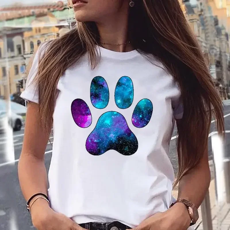 Women T-shirts Love Trend Style Dog Paw Cartoon Animal Pet 90s Summer Graphic Print Female Stylish T Top Shirt Girl Tee T-Shirt